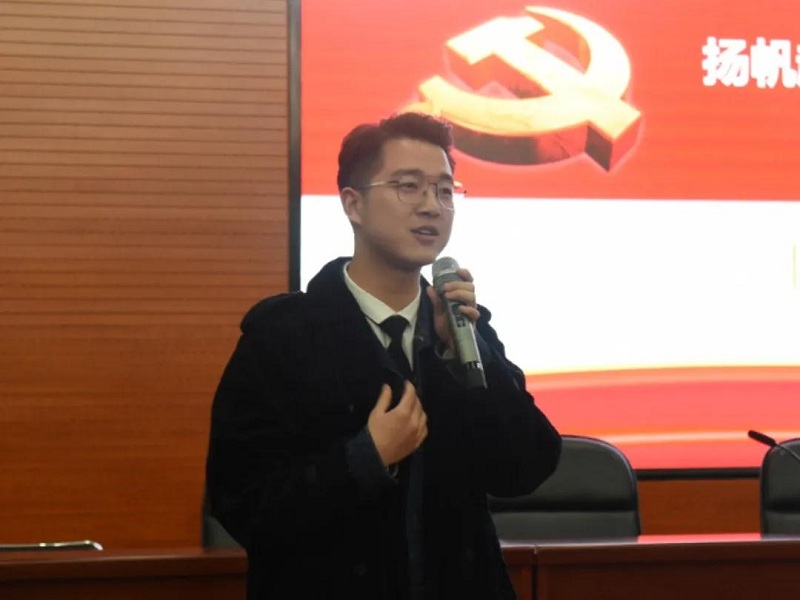 学院学生党支部书记史赫从自己在西藏支教的所见所闻出发,以亲身体会向同学们讲述中国共产党对国家建设的责任与担当。以一个个精彩生动的小故事给出了自己对“什么是党”“什么是党员”的回答,最后,希望同学们以思想入党,有所为、有所担当,和祖国共成长,成为对党和国家有用的栋梁。