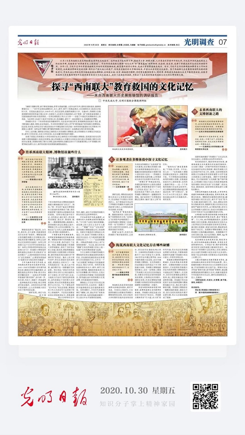 与光明日报联合课题调研组的调研报告《探寻“西南联大”教育救国的文化记忆——来自西南联大历史展陈场馆的调研报告》。
