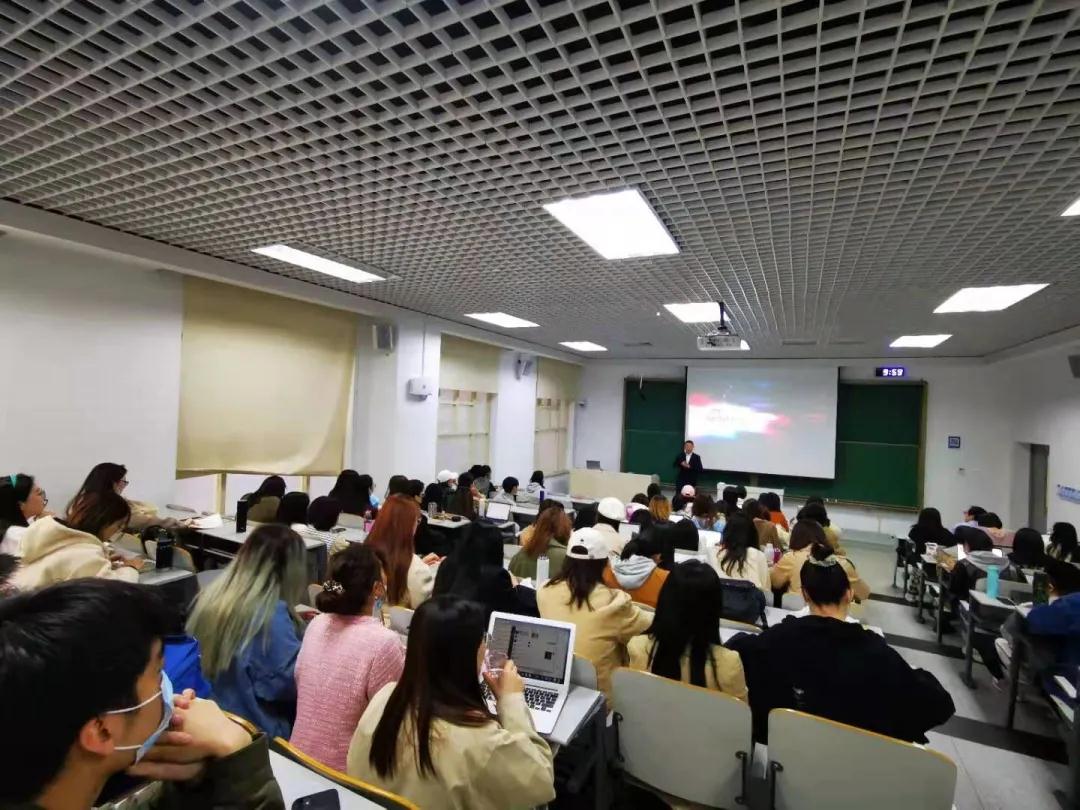 新媒体中心副主任杨超老师主持,2020级硕士研究生100余人在现场聆听了讲座。