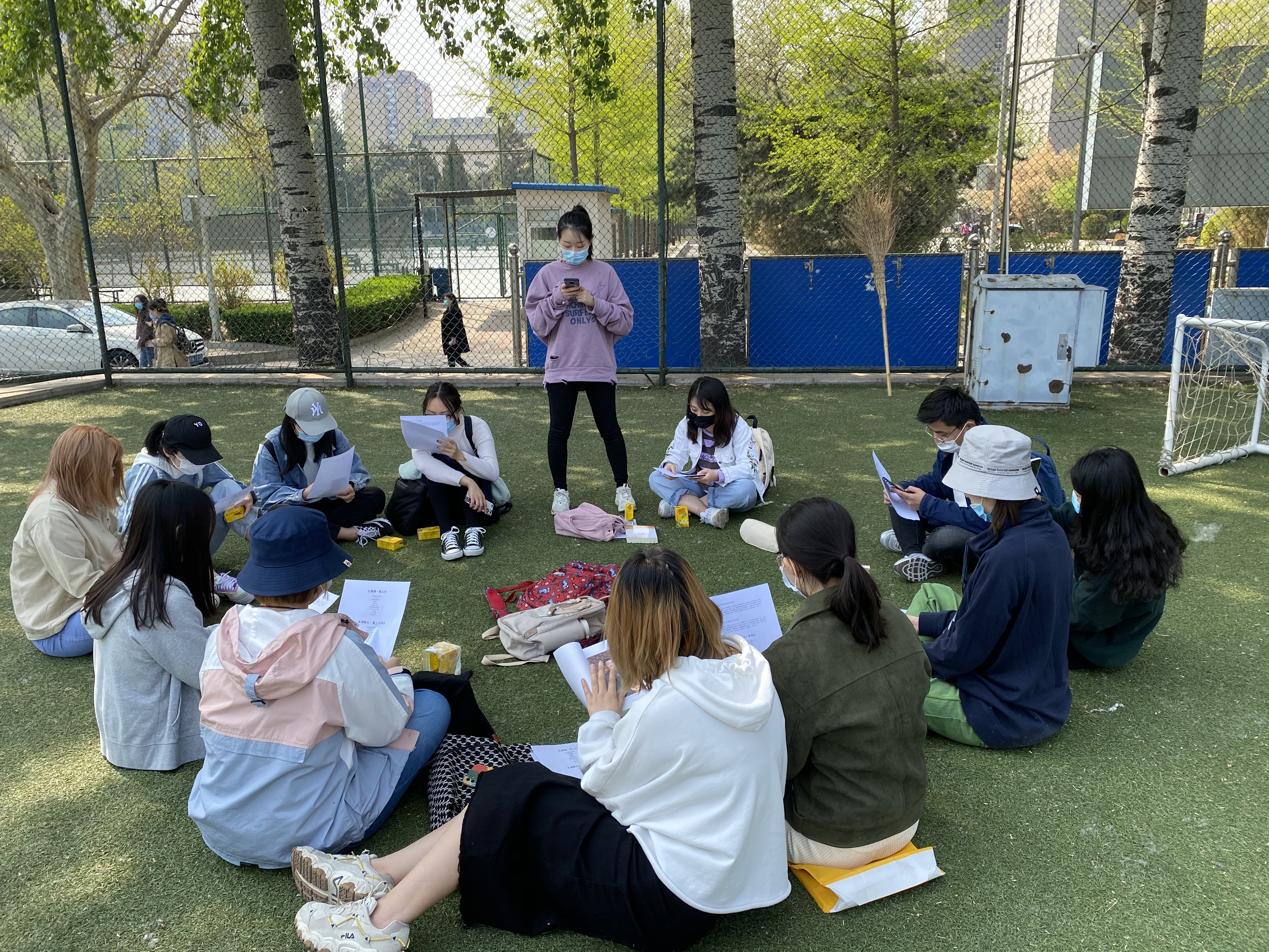 2020级硕士第二党支部15名党员同志于操场席地而坐,开展党史学习教育分享会,围绕电视连续剧《觉醒年代》和毛泽东诗词展开热烈讨论。
