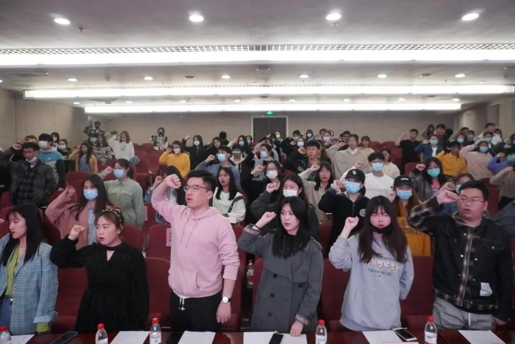 分团现任部长张艺萌对出席本次大会的嘉宾和同学表示感谢。她回顾了2020-2021上半学年的志愿工作,并介绍本学期志愿服务计划。在上半学年,新传分团品牌志愿服务项目“社区朋友圈”——智能手机生活课堂公益活动荣获2020年北京市志愿服务项目大赛银奖。疫情期间,新传分团积极探索,举办了“村村麦”MCN直播公益活动、“书韵飘香,阅读人生”明信片设计暨义卖等志愿活动。最后,她带领现场的志愿者进行宣誓,希望同学们牢记“奉献、友爱、互助、进步”的志愿精神,在志愿道路上携手前进。