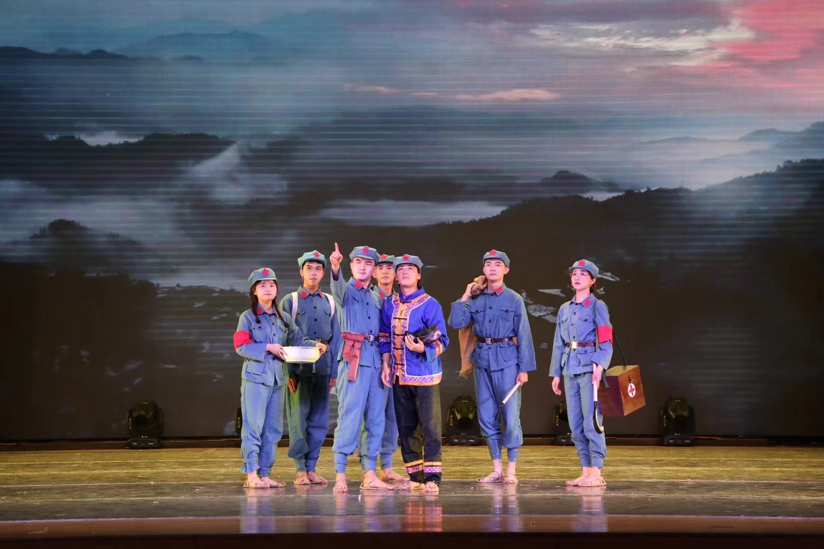 该剧由学院岳广鹏老师担任总策划和总导演,苏米尔老师担任执行导演,学生团队40余人担任主创和演职人员,历时半年完成调研、剧本创作与排演。《长征路·民族情》是搜同