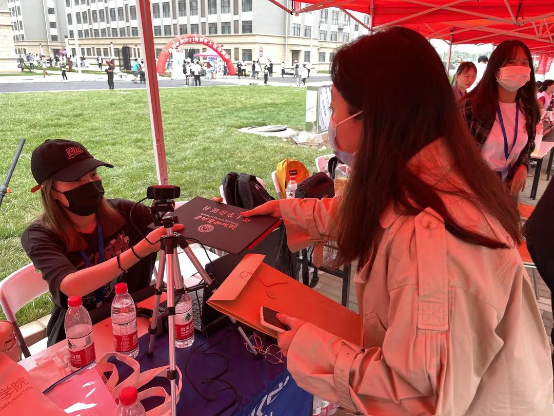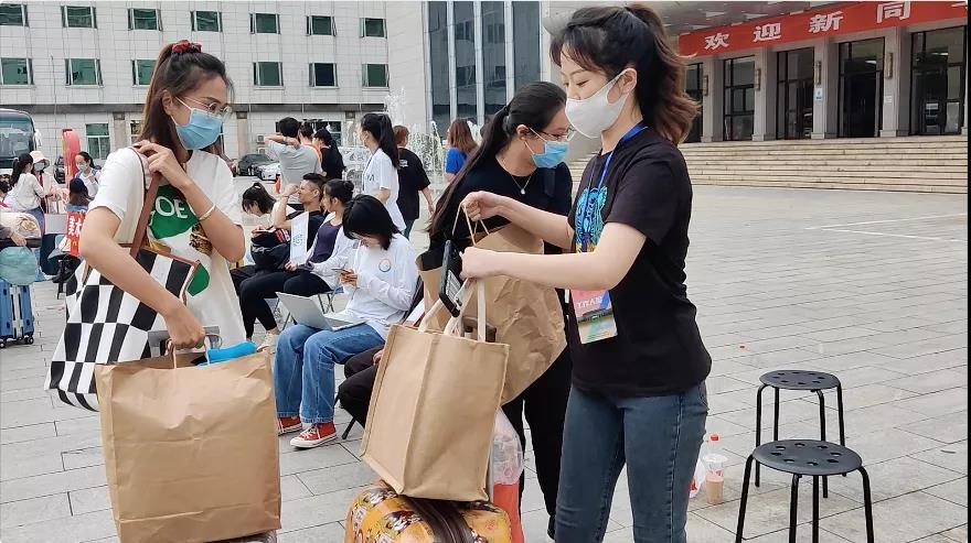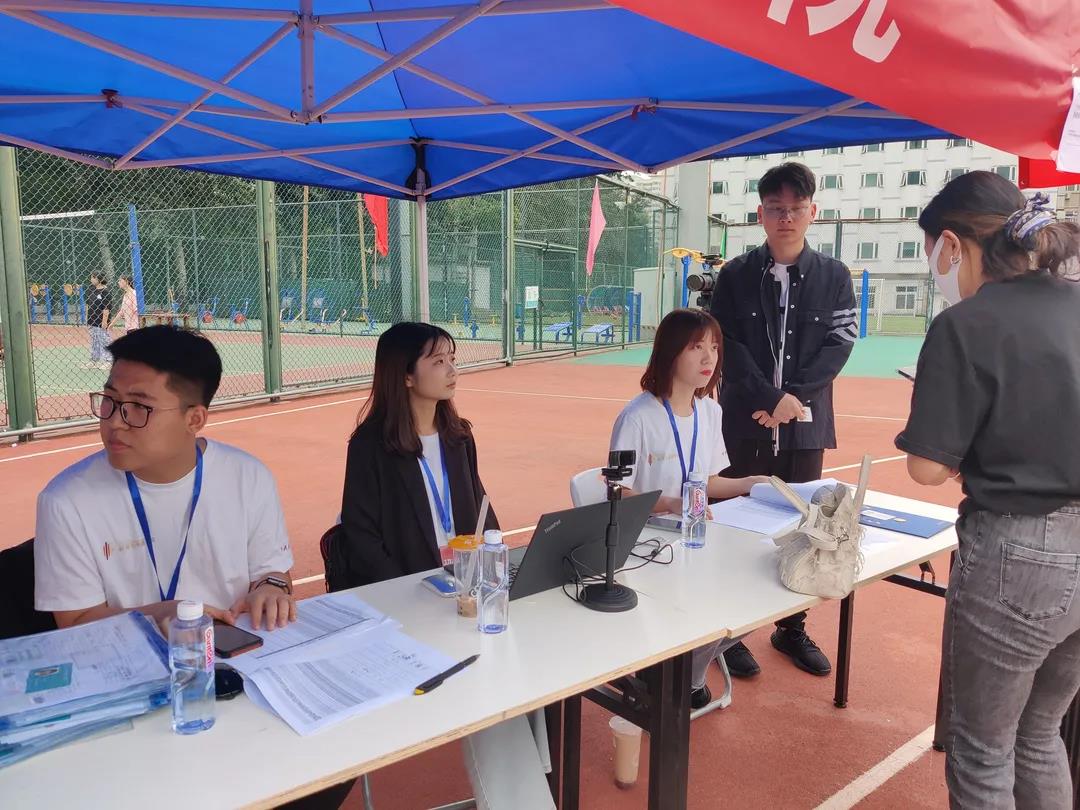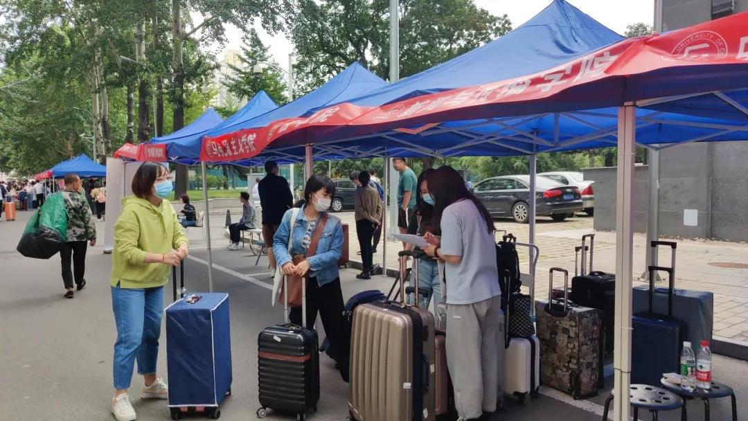 学院领导和老师们在丰台校区迎新处“打卡”,迎接新生们的到来。