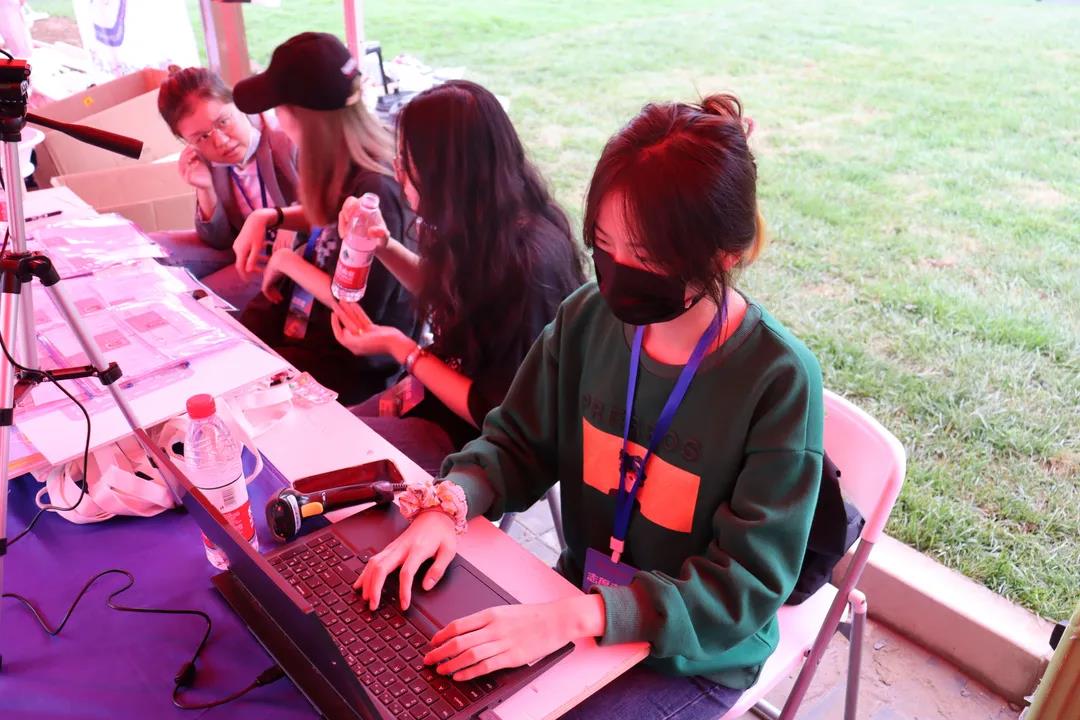 研会的同学们到达操场完成了设备的调适和物料的摆放,提前做好准备。